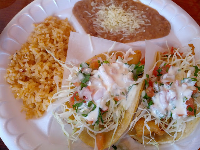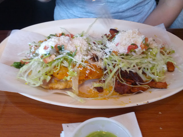 Ashley got the #7: Two sope combo. One al pastor, and one fish. Comes with a drink. $5.25. Ashley enjoyed the al pastor best.